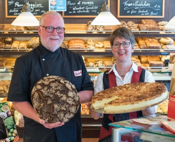 Neben den vielen Gebäcken aus der Backstube erfreuen sich ganz besonders die Spezialitäten aus dem Holzbackofen größter Beliebtheit wie "Oma Trude's Butterkuchen" oder die Brotspezialitäten.